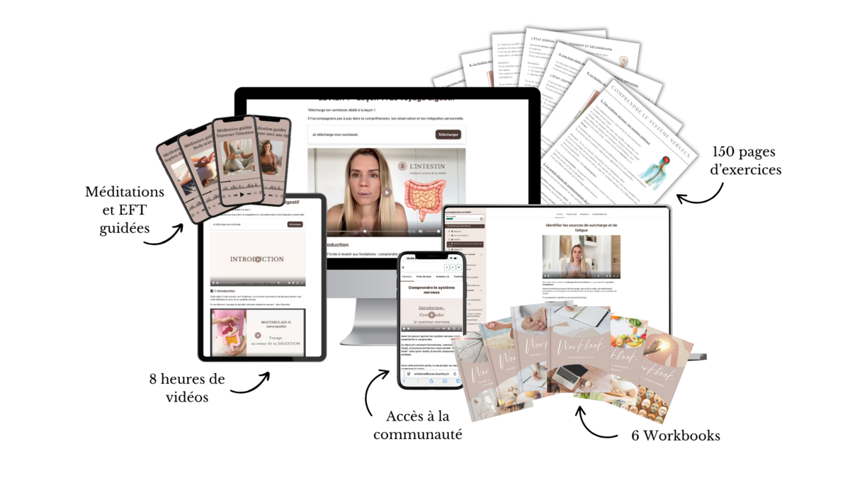 ✅ La santé digestive : prendre soin de ton intestin, ton “deuxième cerveau”, pour apaiser ton mental et renforcer ton système immunitaire.